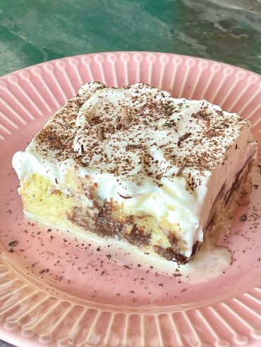Mocha flavored brownies topped with a Kahlua & vodka cream mousse.